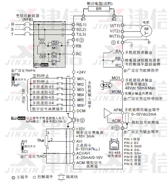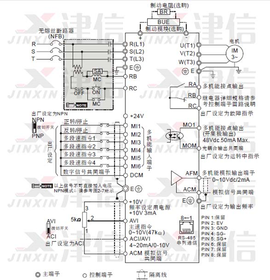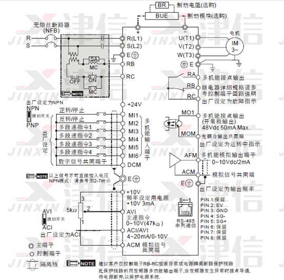 在臺達VFD-E變頻器安裝調試過程中,根據臺達VFD-E變頻器不同的型號,接線方式也略有不同,詳細如下: