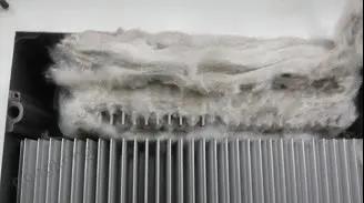 紡織行業和玻璃纖維行業,粉塵以絨毛和纖維的形式出現,生產過程中產生的微小的毛經由變頻器的氣流通道進入到設備的內部。而且由于絨毛相較于塵埃的更大的雜物,會更容易夾在散熱器或空氣過濾器上,或是纏在風扇上。同時由于絨毛的特性會更容易吸引其它的纖維纏繞其上,這樣的情況在嚴重的狀態下幾乎可以完全阻塞變頻器的空氣流動通道。