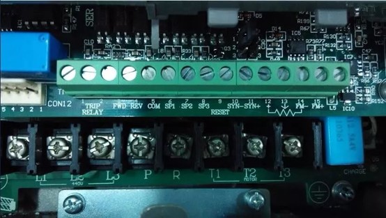 找到變頻器內部直流電源的P端和N端(注:變頻器P端是整流橋整流后出來的正極,N端即為整流后出來的負極,PB是接制動電阻的端子),將萬用表調到二極管檔。