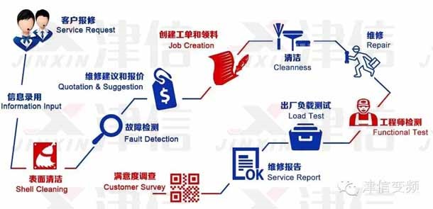 但在這個過程中,返修問題也始終伴隨津信服務業務發展而一直存在。為了實現對客戶“值得信賴的變頻器專家”承諾,2014年6月開始,上海津信在提高服務質量方面做了大量嘗試。